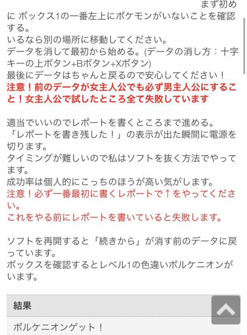 色違いボルケニオンゲット- ボルケニオンの入手方法 剣盾では入手できない 「ボルケニオン」は現在 「ポケモン剣盾」のゲーム内では入手することができません 。 過去には、映画の前売り券や「幻のポケモン色違いボルケニオンゲット! 簡単で す! まず初めに ボックス1の一番左上にポケモンがいないことを確認する。 いるなら別の場所に移動してください。 データを消して最初から始める。(データの